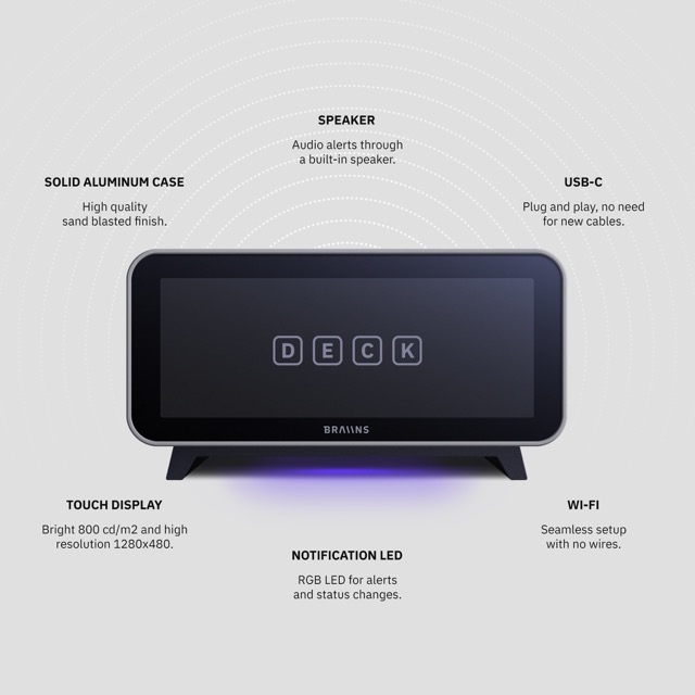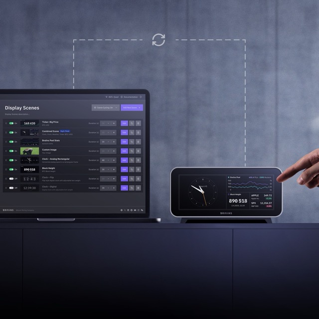 Braiins Deck je žhavá novinka mezi hardwarovými produkty určenými pro kryptoměnovou komunitu, tradery i těžaře. Jde o elegantní datový terminál s dotykovým displejem, který vám jednoduše zpřístupní vše důležité od tržních cen kryptoměn, akcií i komodit až po statistiky blockchainu a mining výkonu vašich strojů. Vše v reálném čase. Vše čistě data přímo na pracovní desce, nebo na nočním stolku.